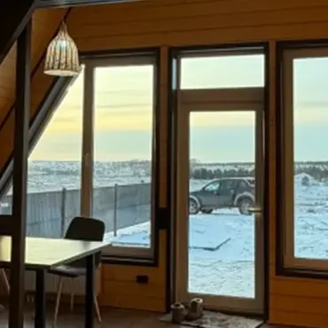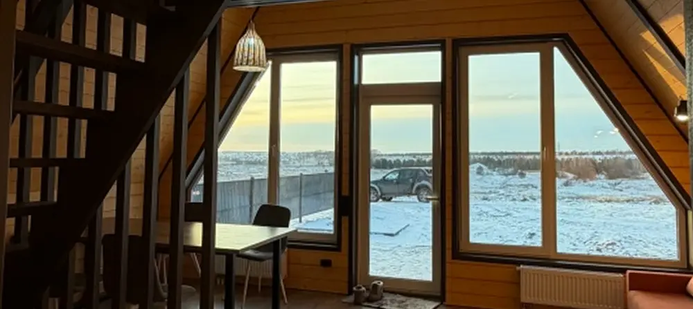 Уютный A-frame дом для спокойного отдыха на природе. Панорамные окна наполняют пространство светом,